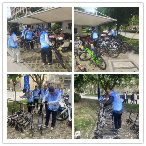 活动现场,党员同志们佩戴党徽、精神饱满,迅速投入整治工作。以 “不放过一处杂乱、不遗漏一辆车辆” 为标准,重点对9号学生公寓周边的车辆进行规整。面对斜停占道的自行车、随意摆放的滑板车,党员们弯腰挪车、有序排列,将每一辆车精准归位到指定停放区域,确保车辆摆放横平竖直、整齐划一。经过整治,该区域的车辆停放秩序得到显著改善,原本杂乱的停车区域变得井然有序,过往通道更加畅通无阻,校园环境面貌焕然一新。