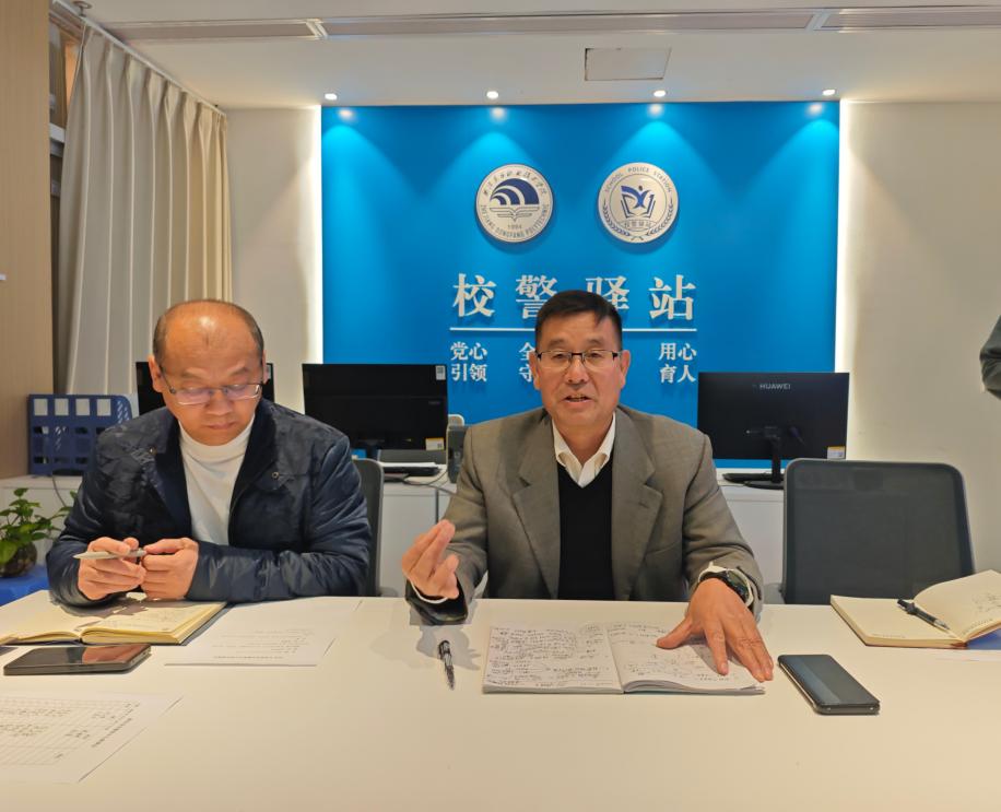 为进一步走深走实校警驿站建设工作,加强校园安全管理工作,推进安全服务中心效能建设,12月30日中午,学校召开安全服务中心师生座谈会,校领导、校警驿站教育专员贺文华、保卫部部门全体人员以及东青星禾安全服务中心学生成员参加本次会议,会议由贺文华主持。